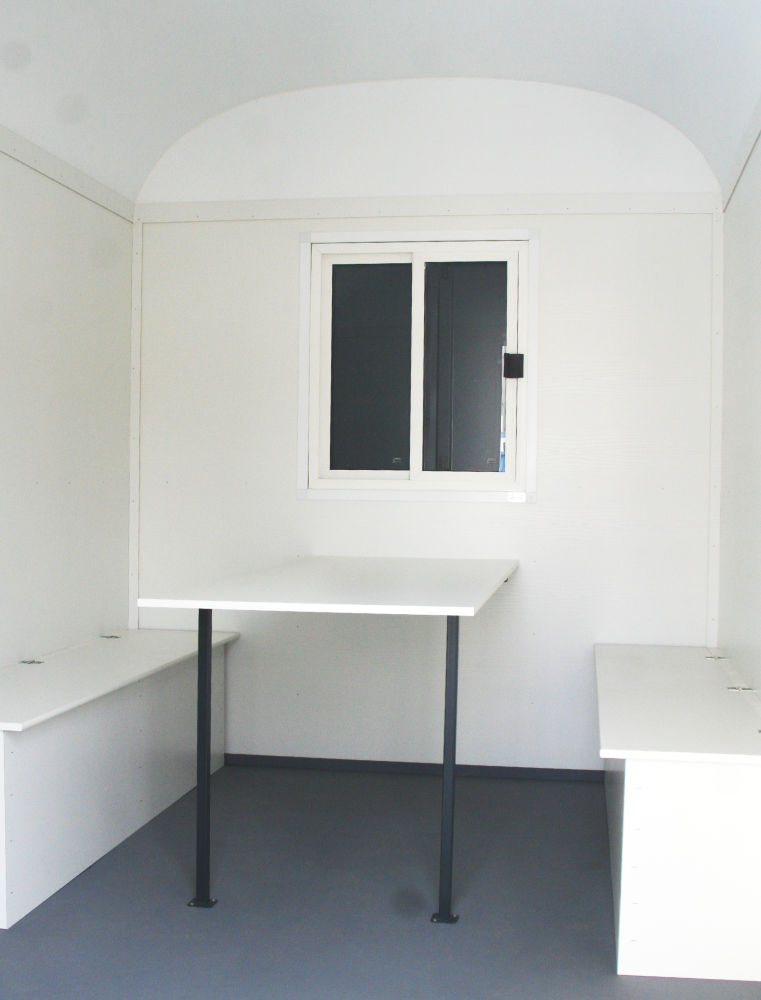 • Innenverkleidung: beidseitig beschichtete Holzwerkstoffplatte, Wände in hellem Holzdekor, Decke in weiß Isolierung an Wänden, Dach und Fußboden, Unterbodenschutzanstrich,